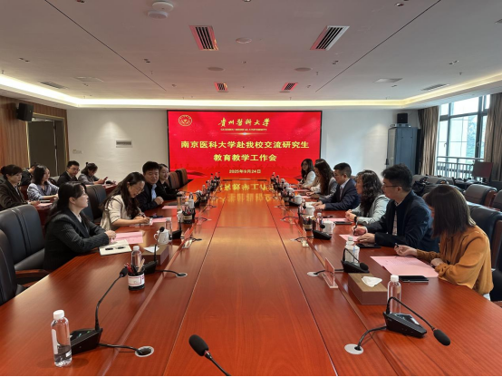 9月24日,南京医科大学研究生院院长靳光付一行7人来院考察交流。学校党委委员、副校长洪峰出席会议并主持,党委研究生工作部部长陈思颖、研究生院院长舒莉萍、副院长梅梅及研究生院科室负责人参会。